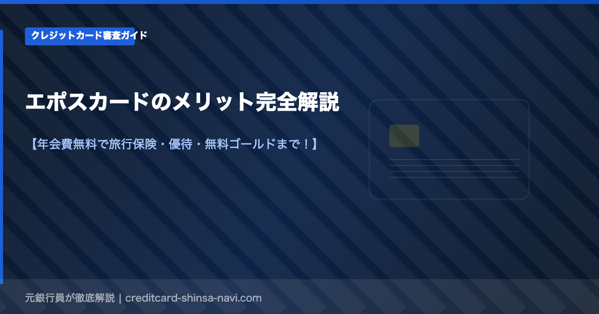 エポスカードは年会費永年無料で、海外旅行保険・全国10,000店以上の優待・ゴールドへの無料昇格など多彩なメリットを持つカードです。特に旅行・外食・レジャーを楽しむ方に向いており、長期保有することでゴールドカードへの招待が届く可能性もあります。