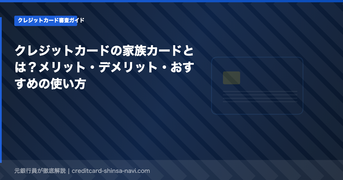クレジットカードの「家族カード」という言葉、聞いたことはありますか?簡単に言うと、メインカード(本会員)と同じカード番号・引き落とし口座を共有する形で、家族が使えるカードのことです。