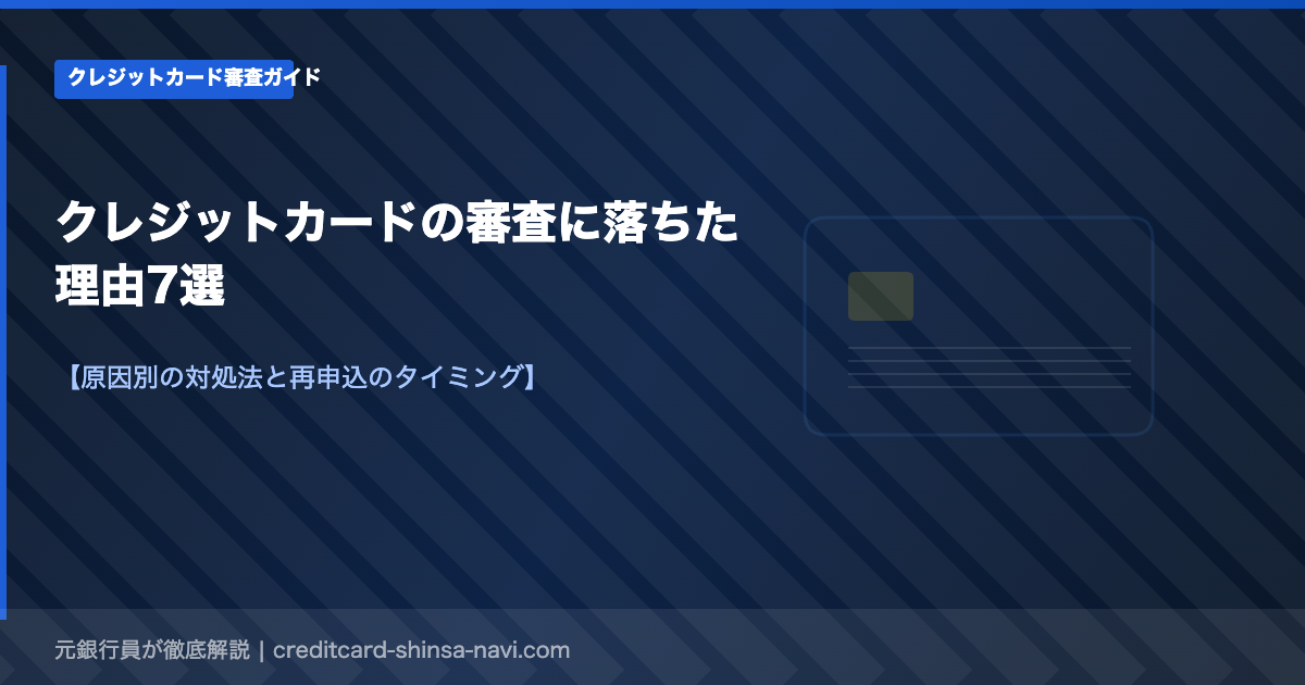 クレジットカードの審査に落ちると「なぜ落ちたのかわからない」という方がほとんどです。カード会社は審査落ちの理由を教えてくれないため、自分で原因を考えるしかありません。この記事では、審査落ちの主な原因7つと、それぞれの対処法・再申し込みのベストなタイミングを解説します。