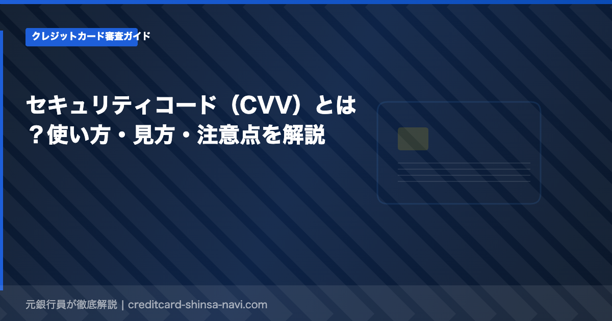 セキュリティコード(CVV/CVC)は、物理カードの裏面(または表面)に印字されている3桁または4桁の番号です。カード番号と有効期限だけでは不正使用されにくくするための追加認証ですが、これが漏洩した場合は不正利用のリスクが高まります。