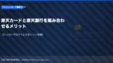 39歳以下限定(申し込み時)ですが、年会費永年無料で海外旅行傷害保険が付帯します。JCBオリジナルシリーズのパートナー店舗では最大10〜11倍のポイント還元があり、旅先のレストランやホテルでの支払いでポイントを効率よく稼げます。国内旅行の際も宿泊代や交通費の支払いで着実にポイントが積み上がります。