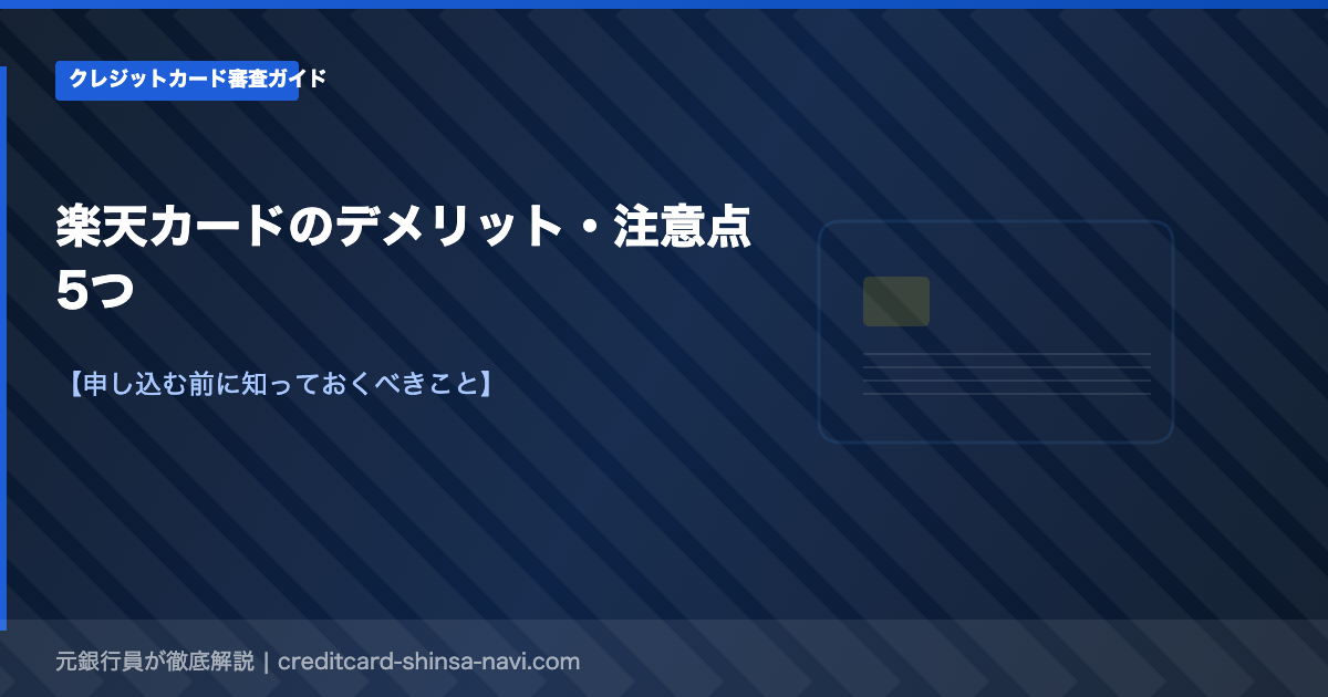 楽天カードは日本で最も人気のあるクレジットカードのひとつですが、メリットばかりでなくデメリット・注意点も存在します。申し込む前に知っておくべき5つのデメリットを正直に解説します。