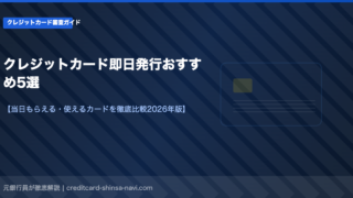 クレジットカード審査クレジットカード即日発行おすすめ5選【当日もらえる・使えるカードを徹底比較2026年版】 クレジットカードを即日発行できるカードを厳選。当日中にカードを手に入れる方法、店頭発行と番号発行の違い、すぐに使えるカードのおすすめ5選を解説します。 2026.03.12クレジットカード審査