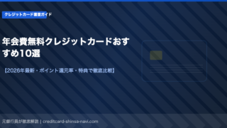 クレジットカード審査年会費無料クレジットカードおすすめ10選【2026年最新・ポイント還元率・特典で徹底比較】 年会費無料で使えるクレジットカードのおすすめ10選を徹底比較。ポイント還元率・付帯特典・審査の通りやすさで選ぶ最強の1枚を元銀行員が解説します。 2026.03.12クレジットカード審査