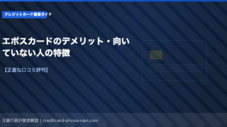 クレジットカード審査エポスカードのデメリット・向いていない人の特徴【正直な口コミ評判】 エポスカードのデメリットと向いていない人の特徴を正直に解説。還元率・使える場所・年会費などの注意点を明確にし、申し込む前に確認すべきポイントを網羅。 2026.03.12クレジットカード審査