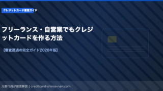 クレジットカード審査フリーランス・自営業でもクレジットカードを作る方法【審査通過の完全ガイド2026年版】 フリーランスや自営業でもクレジットカードの審査に通れます。収入の申告方法と審査が通りやすいカード、審査対策を徹底解説します。 2026.03.12クレジットカード審査
