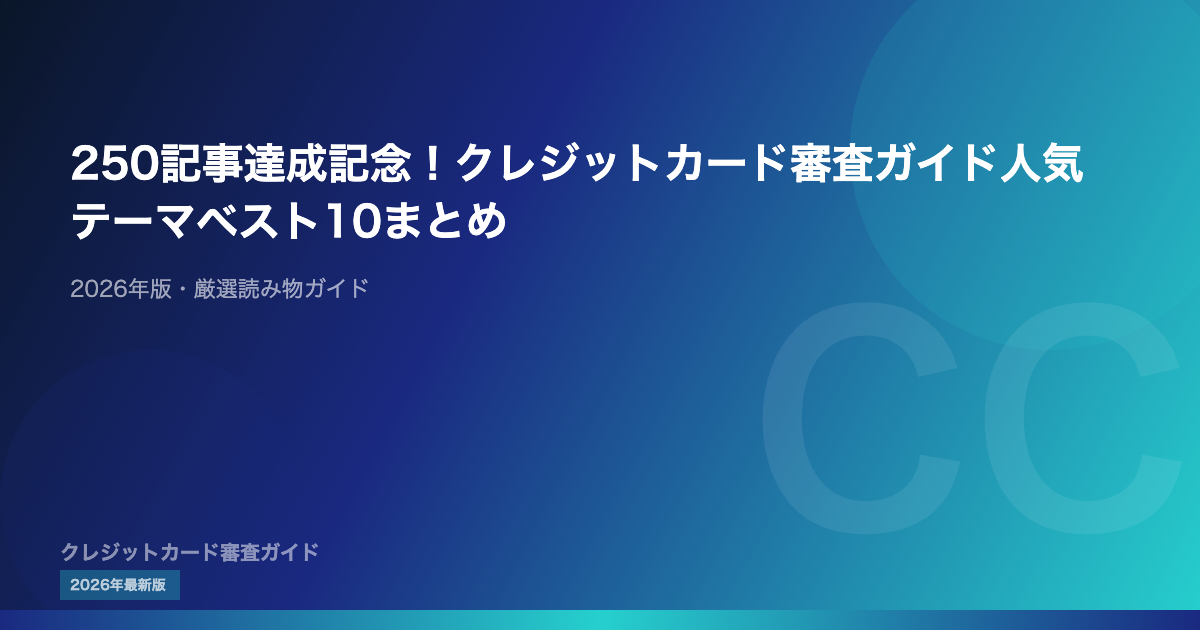 クレジットカード審査ガイドはついに250記事を達成しました!これもご愛読いただいている皆様のおかげです。今回は節目として、当サイトで扱ってきた幅広いテーマの中から、読者の関心が高いと思われる10のテーマを厳選してご紹介します。クレジットカードに関する知識を深めたい方、ぜひ気になる記事からご覧ください。