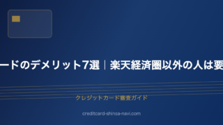 クレジットカード審査楽天カードのデメリット7選|楽天経済圏以外の人は要注意! 楽天カードのデメリットを7つ詳しく解説。楽天経済圏依存、改悪リスク、ETCカード年会費など、申し込む前に把握しておくべき注意点をまとめました。 2026.03.11クレジットカード審査